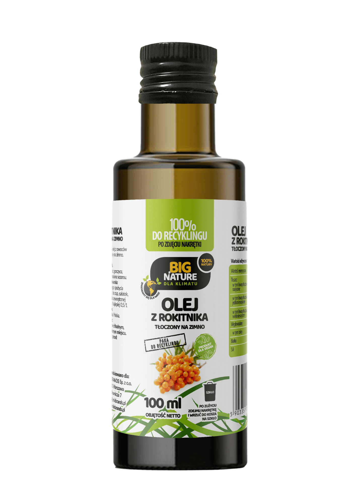 Opis: Opakowanie zawiera 100ml oleju z rokitnika tłoczonego na zimno.