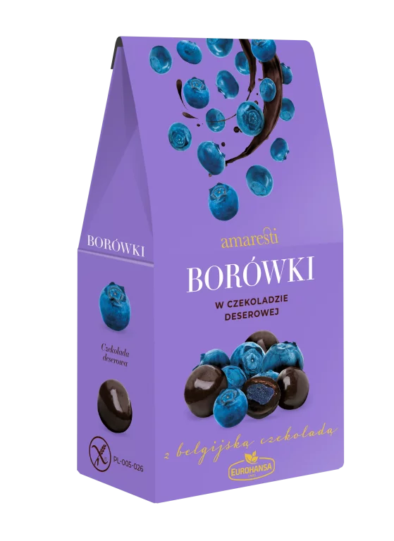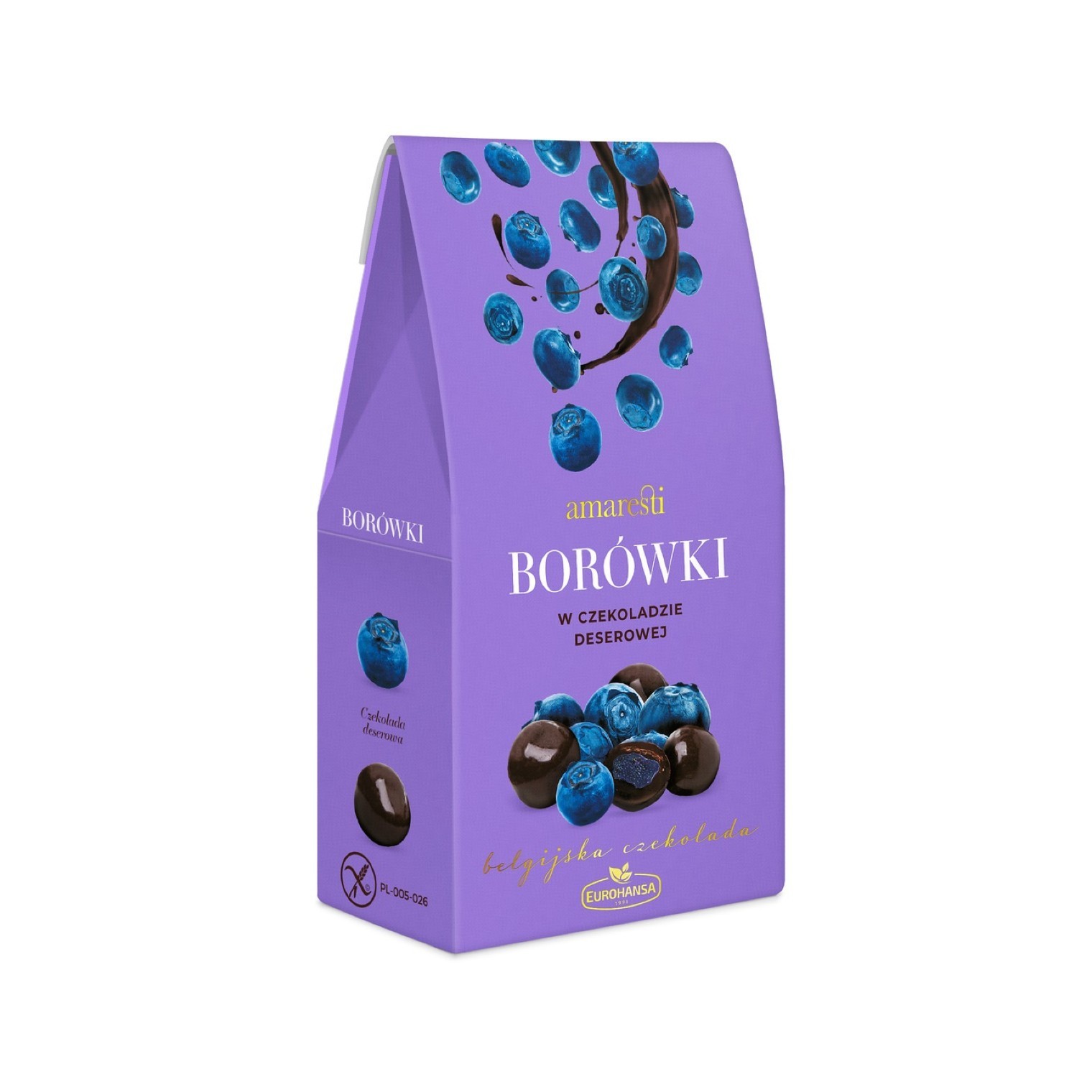 Nowe opakowanie AMARESTI Borówki w czekoladzie deserowej to gustowne pudełeczko, dzięki któremu te wyjątkowe łakocie doskonale sprawdzają się w roli słodkiego, uroczego podarunku na każdą okazję.