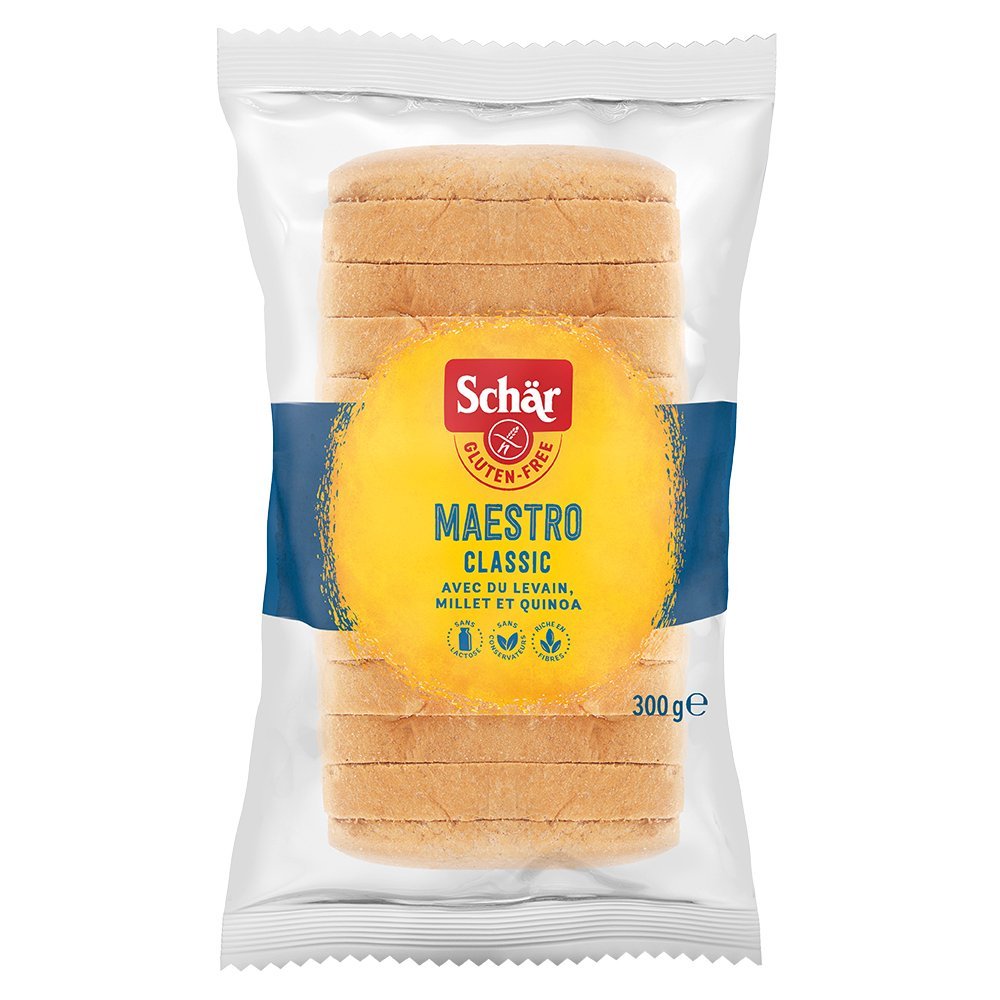 Bezglutenowy chleb Maestro Classic firmy Schär powstaje na bazie zakwasu i starożytnych ziaren (proso i quinoa), dzięki czemu jest bardziej miękki i soczysty