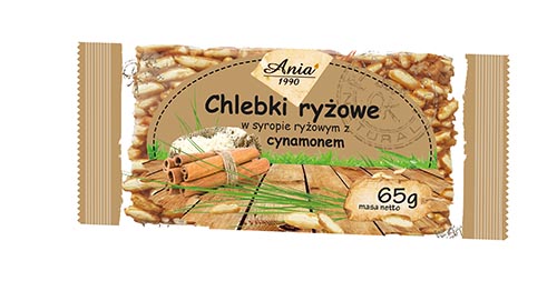 Chlebki ryżowe w syropie ryżowym z cynamonem firmy Ania to słodka przekąska na bazie preparowanego ryżu. Ich wyjątkową słodycz nadaje syrop ryżowy, za pomocą którego posklejane jest ryż. Dodatkowym walorem smakowym jest dodatek cynamonu.
