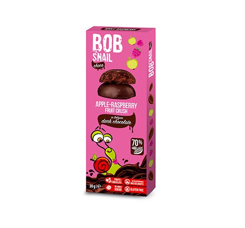 Naturalna przekąska ze skondensowanych owoców w polewie z ciemnej czekolady. Wytworzona tylko z naturalnych składników przekąska owocowa bez dodatku cukru, konserwantów i wzmacniaczy smaku. Produkt nie zawiera: antyzbrylaczy, barwników, cholesterolu, cukru, drożdży, glutenu, GMO, jajek, konserwantów, laktozy, nabiału, oleju palmowego, orzechów, pestek, pszenicy, soi, tłuszczy trans (utwardzanych). Gotowe do spożycia po wyjęciu z opakowania.