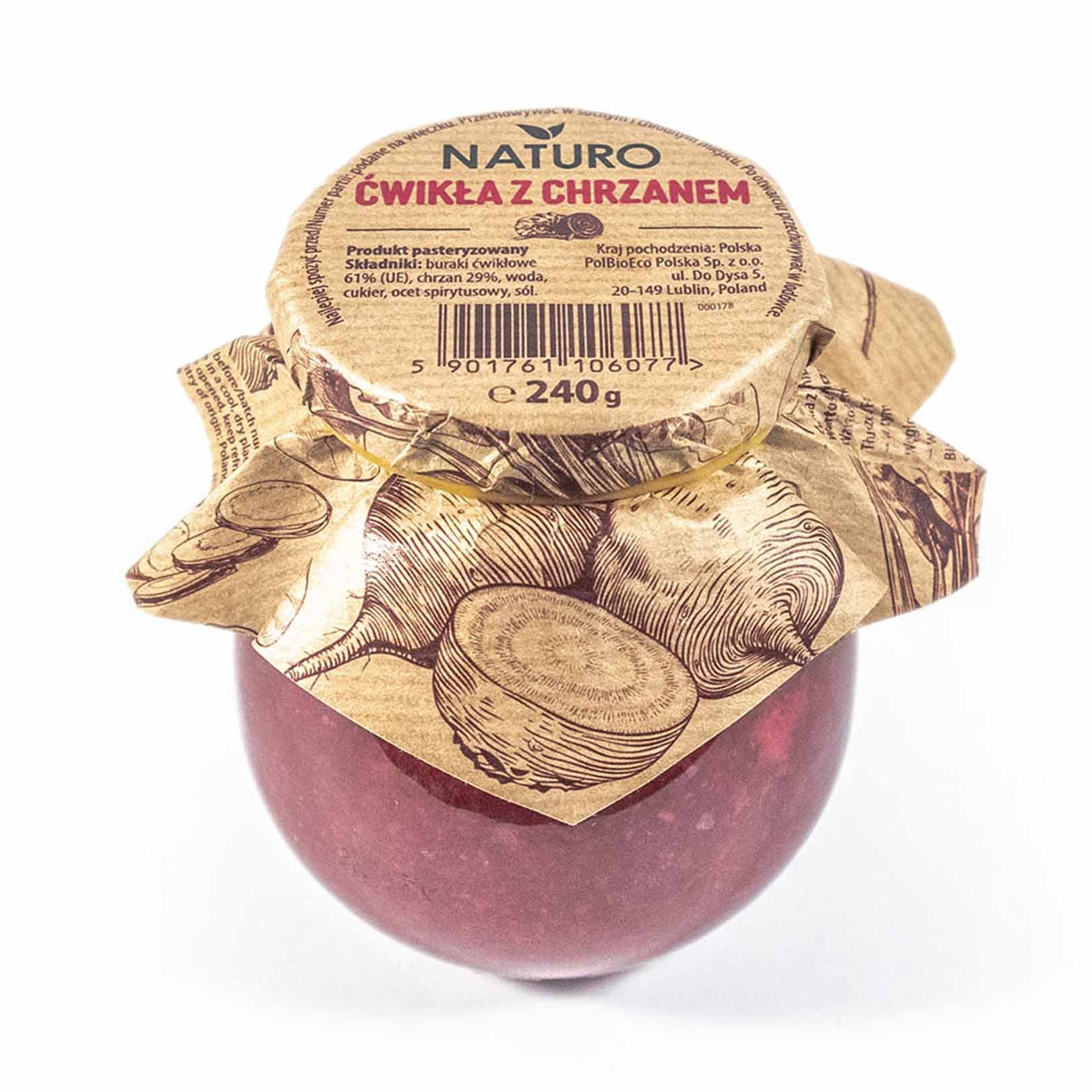 Ćwikła czerwona z chrzanem 240g – Nie zawiera konserwantów i sztucznych barwników.
