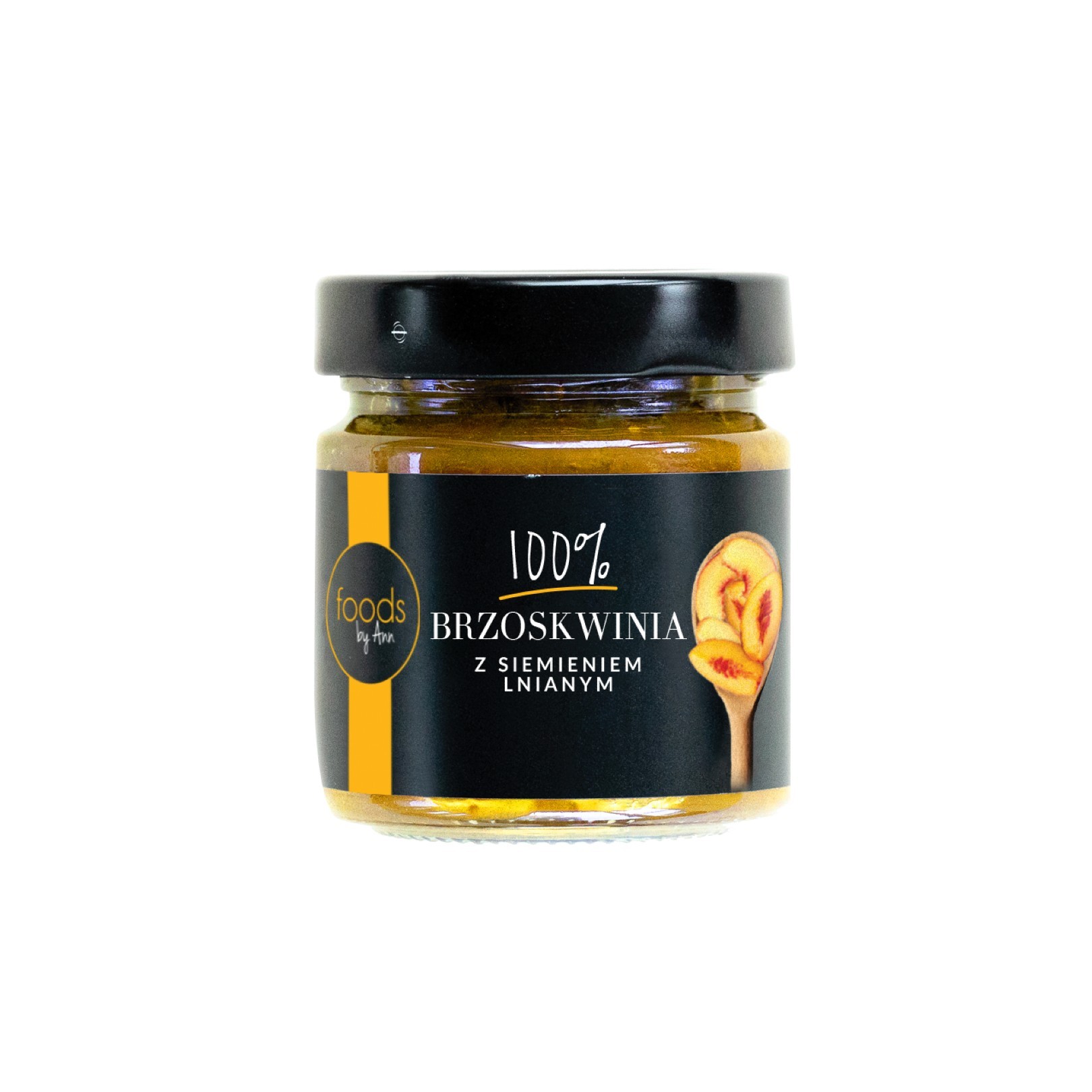 brzoskwinia (sporządzono z 100 g owoców na 100 g produktu), sok jabłkowy, nasiona siemienia lnianego 1%, substancja zagęszczająca – pektyny, sok z cytryny.