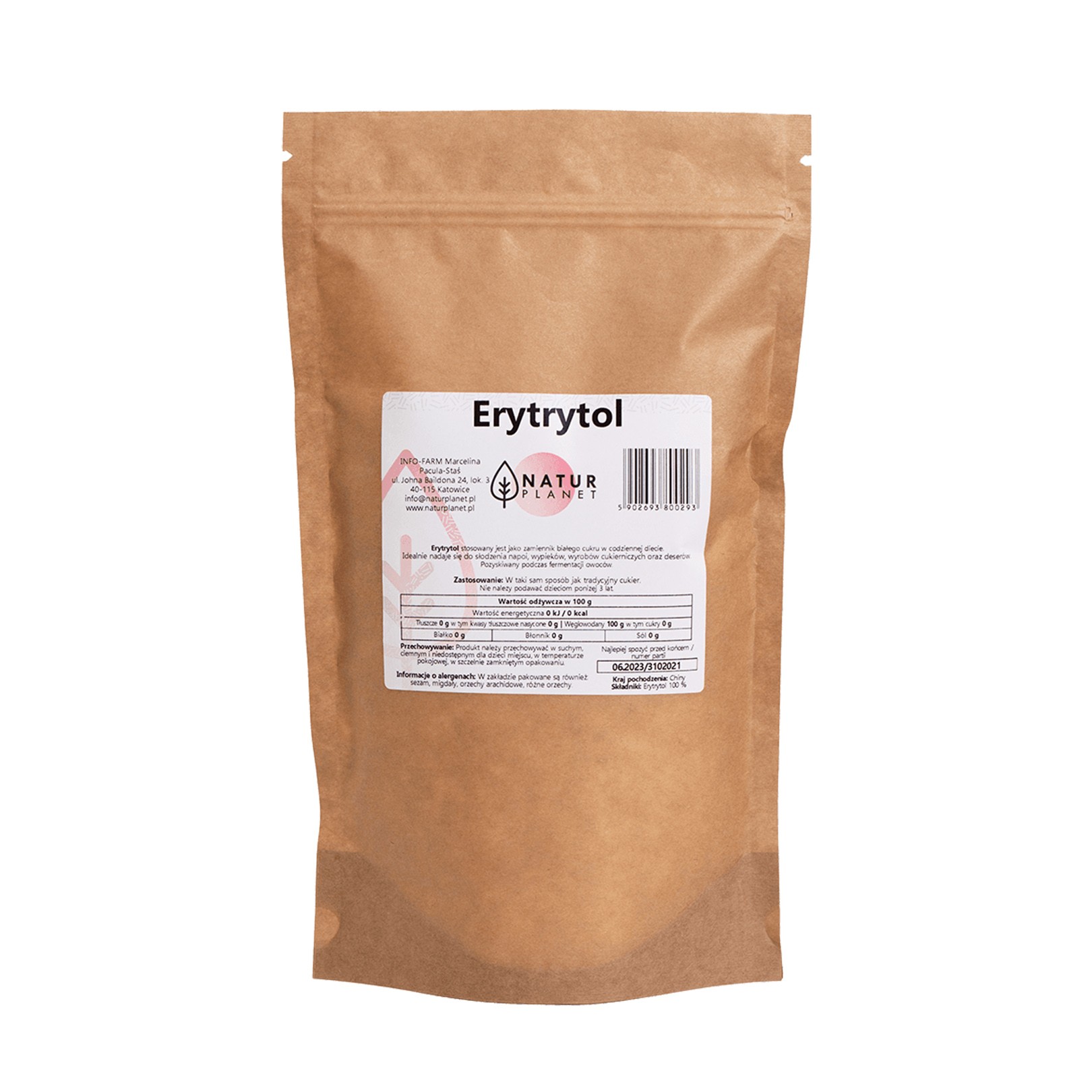 Erytrytol to słodzik pozyskiwany w drodze fermentacji glukozy, który należy do grupy alkoholi wielowodorotlenowych (tej samej co ksylitol). Ma zerowy indeks glikemiczny i bardzo niską wartość energetyczną. . Nie wchłania się i jest całkowicie wydalany z organizmu wraz z moczem. Erytrytol idealnie nadaje się do słodzenia napojów, wypieków, wyrobów cukierniczych oraz deserów. Jest nieco mniej słodki od cukru, jednak nie zmienia smaku potraw i doskonale go zastępuje.