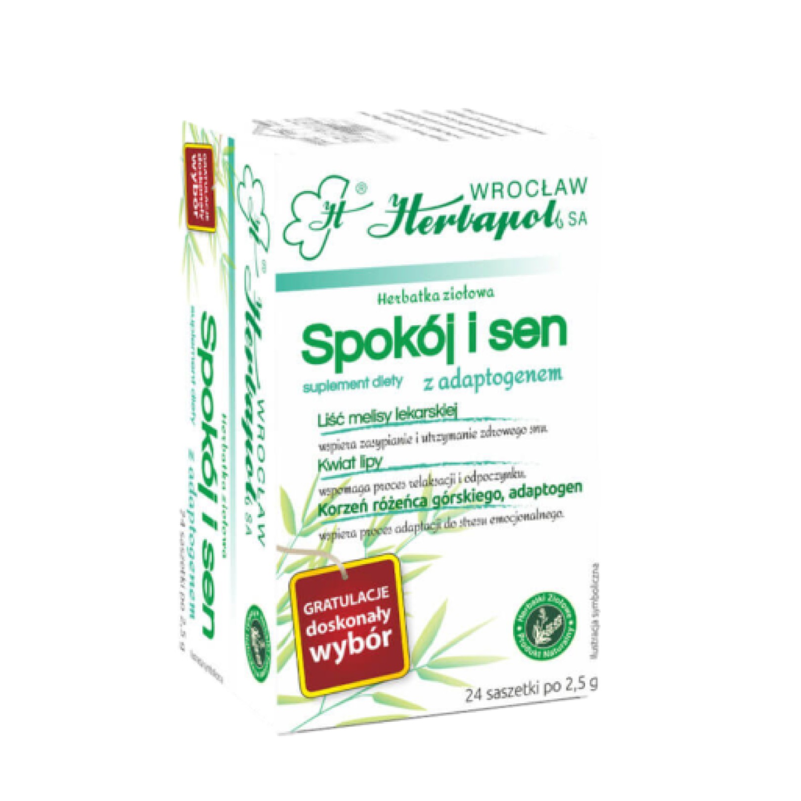 Herbatka Spokój i sen z adaptogenem stworzona została dla osób chcących zachować spokój w stresujących sytuacjach. Kompozycja składników pozwoli na zdrowy i kojący sen.