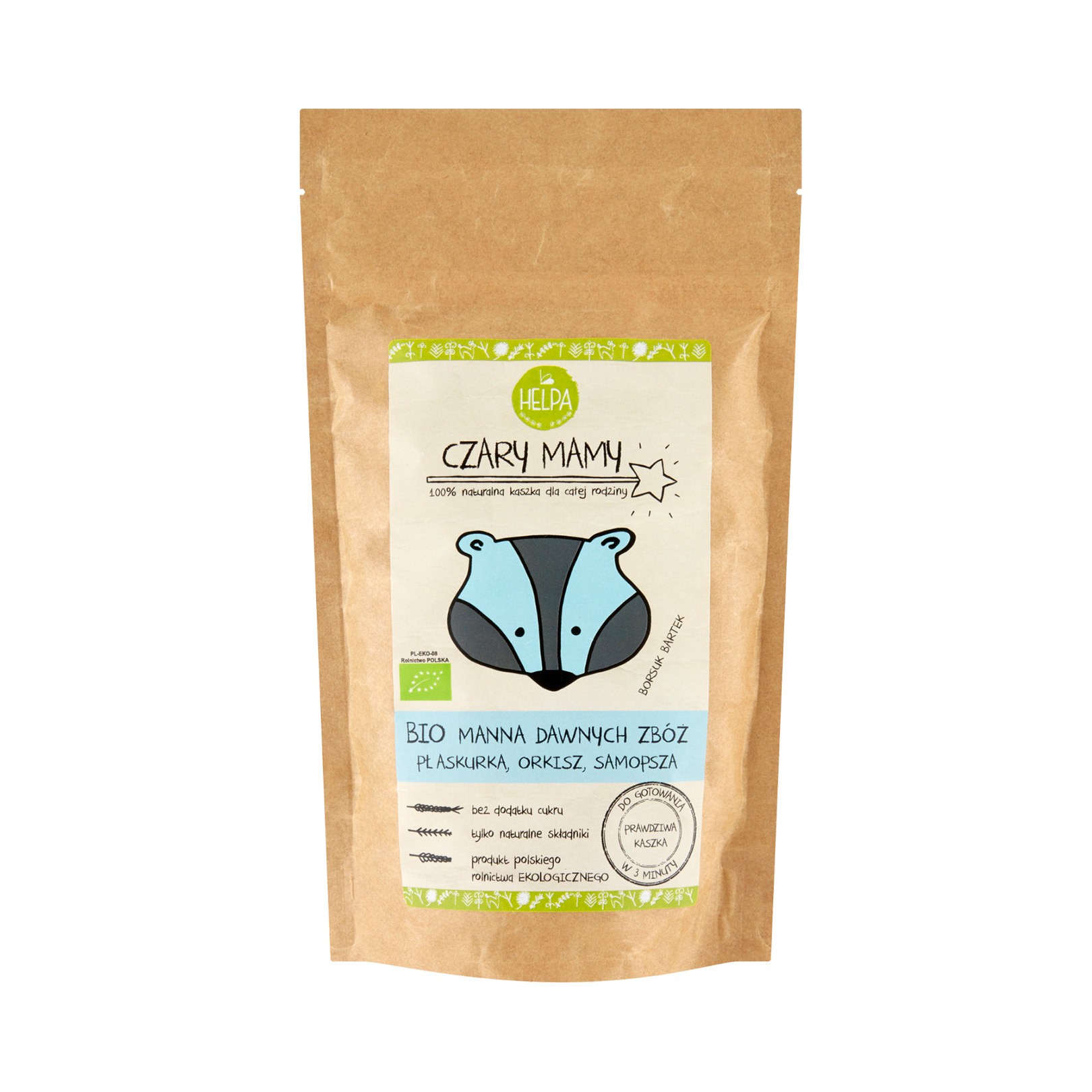 Bio Manna Dawnych Zbóż. Manna z trzech dawnych odmian pszenicy – płaskurki, orkiszu i samopszy. Smak dzieciństwa wzbogacony wysoką wartością odżywczą zbóż.Kaszki CZARY MAMY to produkty dla całej rodziny. Naturalne zboża zawarte w ich składzie, starannie wyselekcjonowane i odpowiednio rozdrobnione, wymagają zaledwie 2-3 minut gotowania. Dzięki naszym staraniom otrzymaliśmy produkt idealny- szybki w przygotowaniu lecz zarazem zachowujący wartości odżywcze. Nasze kaszki polecamy rodzinom szukającym naturalnej żywności, która jest jednocześnie wygodna i szybka w przygotowaniu. Dzięki kaszce CZARY MAMY każda mama może stać się czarodziejką, w trzy minuty tworząc posiłek pełen wartości odżywczych i smaku. Produkt nie jest produktem specjalnego przeznaczenia żywieniowegoPrzygotuj w naczyniu do gotowania 200 ml zimnej wody lub mleka wsyp powoli dwie łyżki Kaszki Czary Mamy doprowadz do wrzenia cały czas mieszając do uzyskania jednolitej konsystencjii i gotuj 2-3 minuty.
