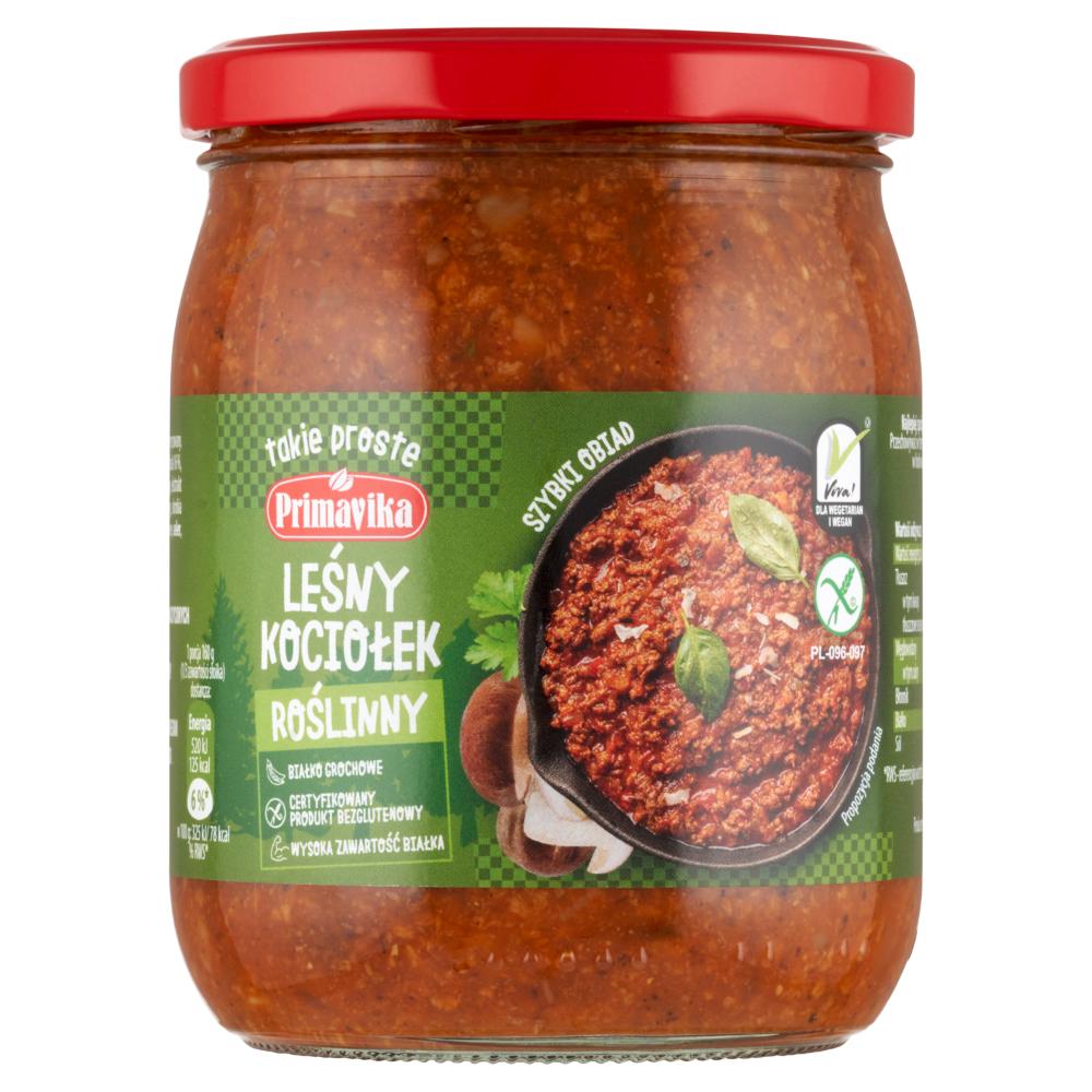 Danie obiadowe Leśny Kociołek to klasyka kuchni polskiej. Jest to bardzo uniwersalna potrawa, która wykorzystywany jest do różnorodnych dań. Pasuje do klusek na parze, kopytek, a także placków ziemniaczanych, ryżu oraz kaszy. Ogromna popularność oryginalnego sosu myśliwskiego w wersji mięsnej zainspirowała nas do stworzenia wegetariańskiego wariantu. Nasz roślinny sos to połączenie tradycyjnej receptury z nowoczesnym podejściem do gotowania. W naszej wersji sosu myśliwskiego nie zabrakło tego, co jest prawdziwym aromatem lasu, czyli grzybów. W słoiczku zamknęliśmy smakowity sos na bazie suszonych grzybów i pieczarek. Znalazło się w nim również roślinne mięso, które sprawia, że sos jest bardzo treściwy i sycący – idealnie nadaje się jako baza do szybkiego w przygotowaniu obiadu wegańskiego. Poza tym w Leśnym Kociołku Primavika nie zabrakło cebuli, która podkreśla smak całości oraz ogórka kiszonego, który dzięki swojej kwasowości sprawia, że produkt jest bardzo wyrazisty. Gotowe danie obiadowe Primavika jest bardzo pożywne dzięki wysokiej zawartości białka. Brak cukru oraz glutaminianu i barwników sprawia, że jest on także zdrowy i naturalnie smaczny.