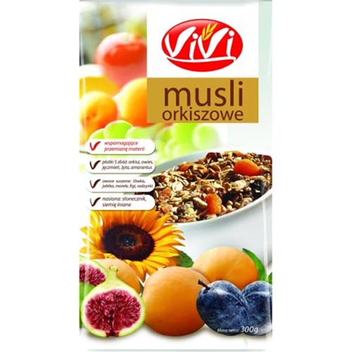 płatki orkiszowe,płatki owsiane,płatki jęczmienne,płatki żytnie,siemię lniane,słonecznik,amarantus,suszone owoce (śliwki,rodzynki,,figi,morele,jabłka)