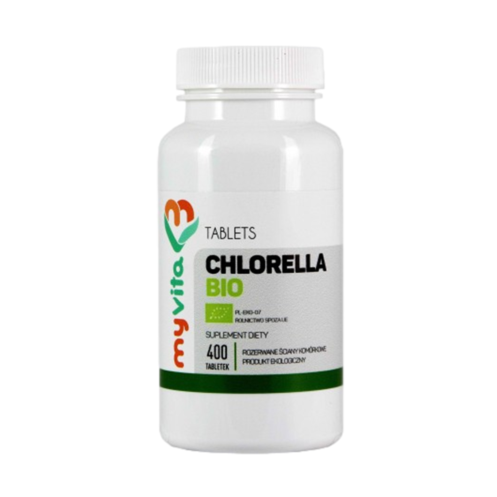 Chlorella bio (chlorella vulgaris) pochodząca z kontrolowanych upraw ekologicznych.