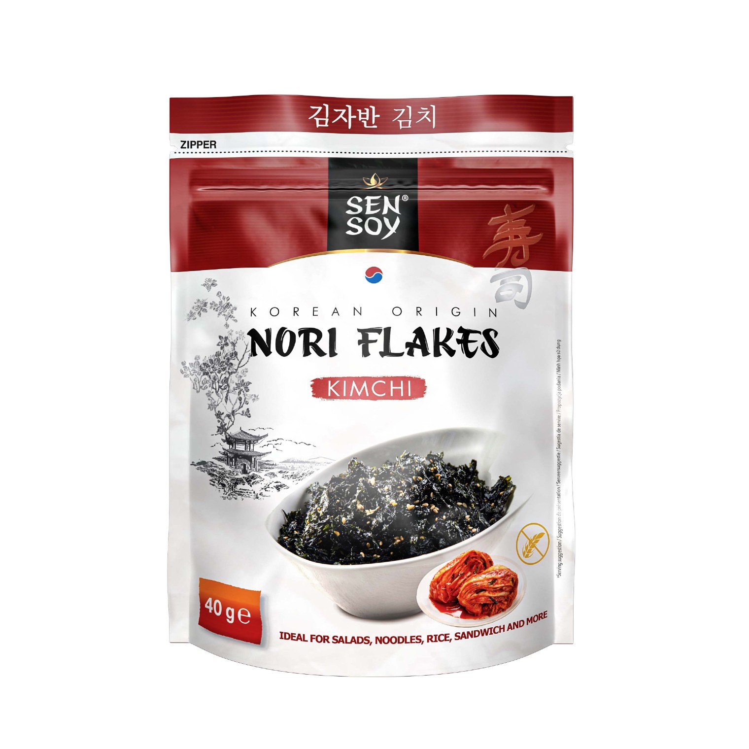 Chrupiące płatki algów nori w wersji Kimchi – prażone z dodatkiem oleju sezamowego, a następnie oprószone pikantną mieszanką czerwonej papryki i soli. Ta naturalna, azjatycka przekąska z pazurem sprawdzi się jako smaczny i wartościowy zamiennik dla tłustych chipsów i innych niezdrowych przekąsek. Nori kryje w sobie źródło dobroczynnych składników, takich jak witamina B12, błonnik, żelazo, szereg aminokwasów oraz odżywcze tłuszcze omega-3.