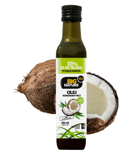 Opis: Opakowanie zawiera 250ml oleju kokosowego MCT.