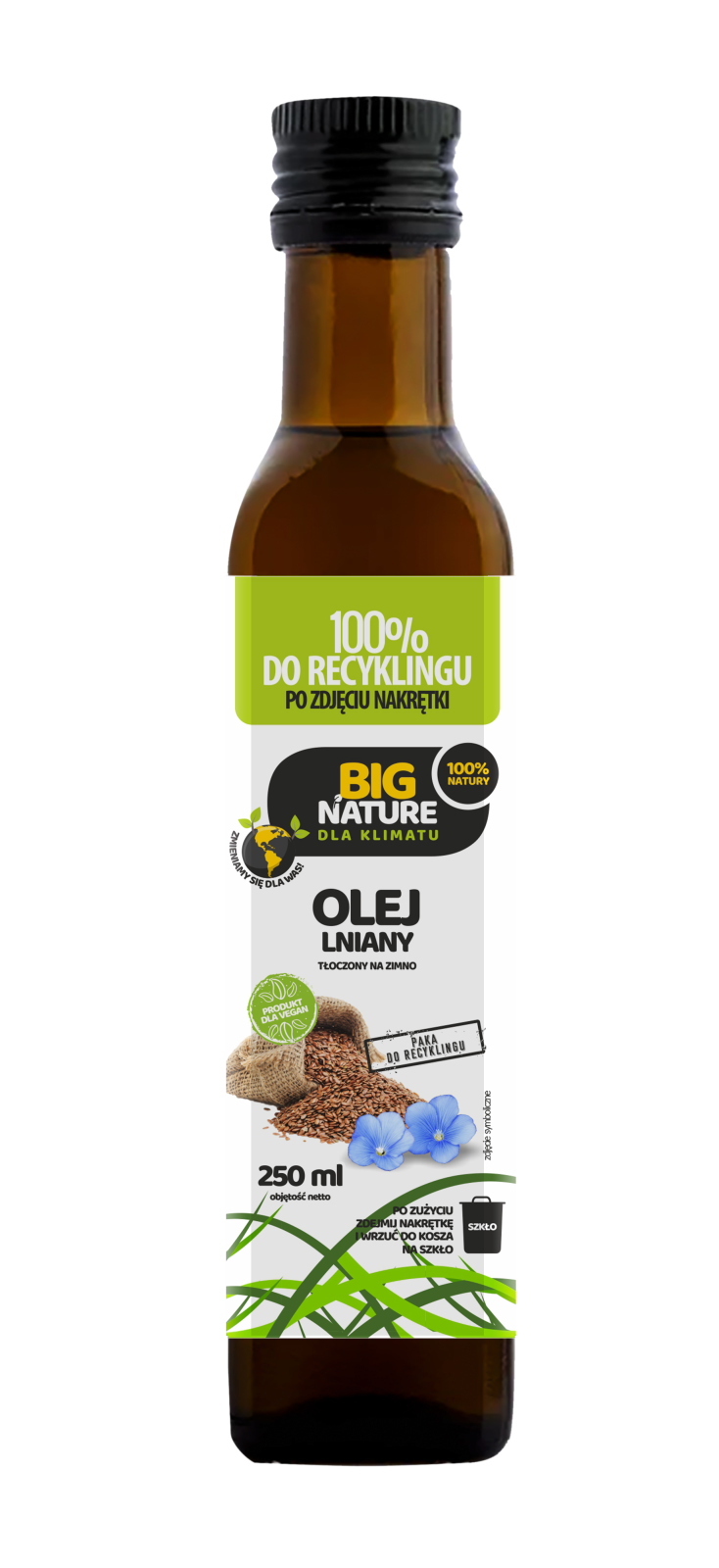 Opakowanie zawiera 250ml oleju lnianego tłoczonego na zimno.