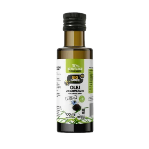 Tłoczony na zimno olej z czarnuszki to, zdrowy i pyszny dodatek do codziennych posiłków. Do spożycia na zimno.