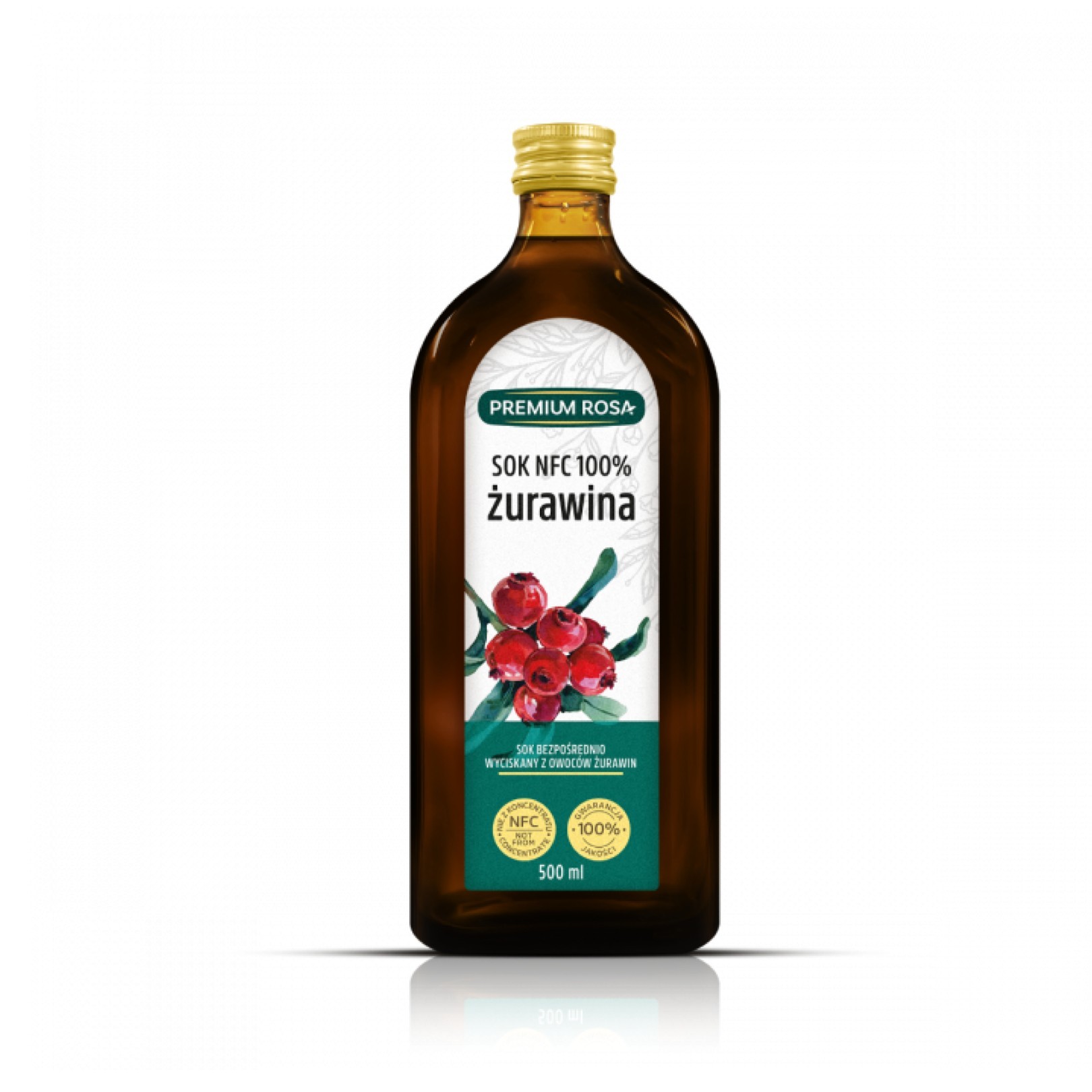 Sok z żurawiny to produkt powstały z najwyższej jakości owoców metodą tłoczenia, bez dodatku cukru ani substancji konserwujących. Charakteryzuje się pięknym, ciemnoczerwonym kolorem i mocnym, kwaśnym smakiem.