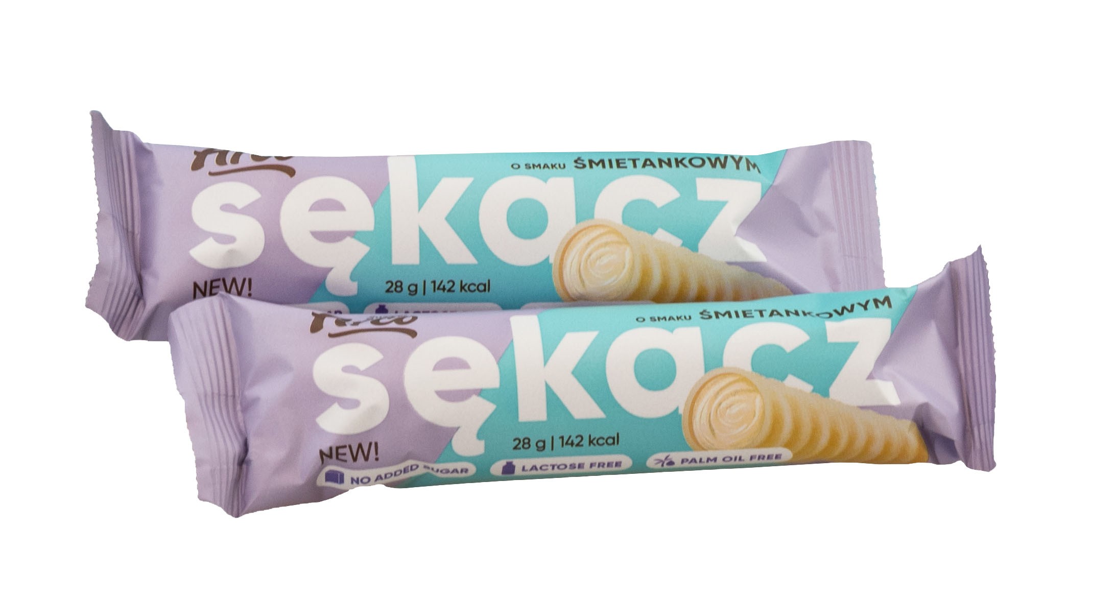 Arco sękacz śmietankowy bez dodatku cukru, bez laktozy i bez oleju palmowego, mega chrupka zawijana rurka waflowa wypełniona kremowym nadzieniem bez ani grama wody – dzięki temu rurka zachowuje swoją niebywałą kruchość.