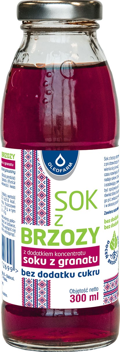 Sok z brzozy z dodatkiem koncentratu soku z granatu