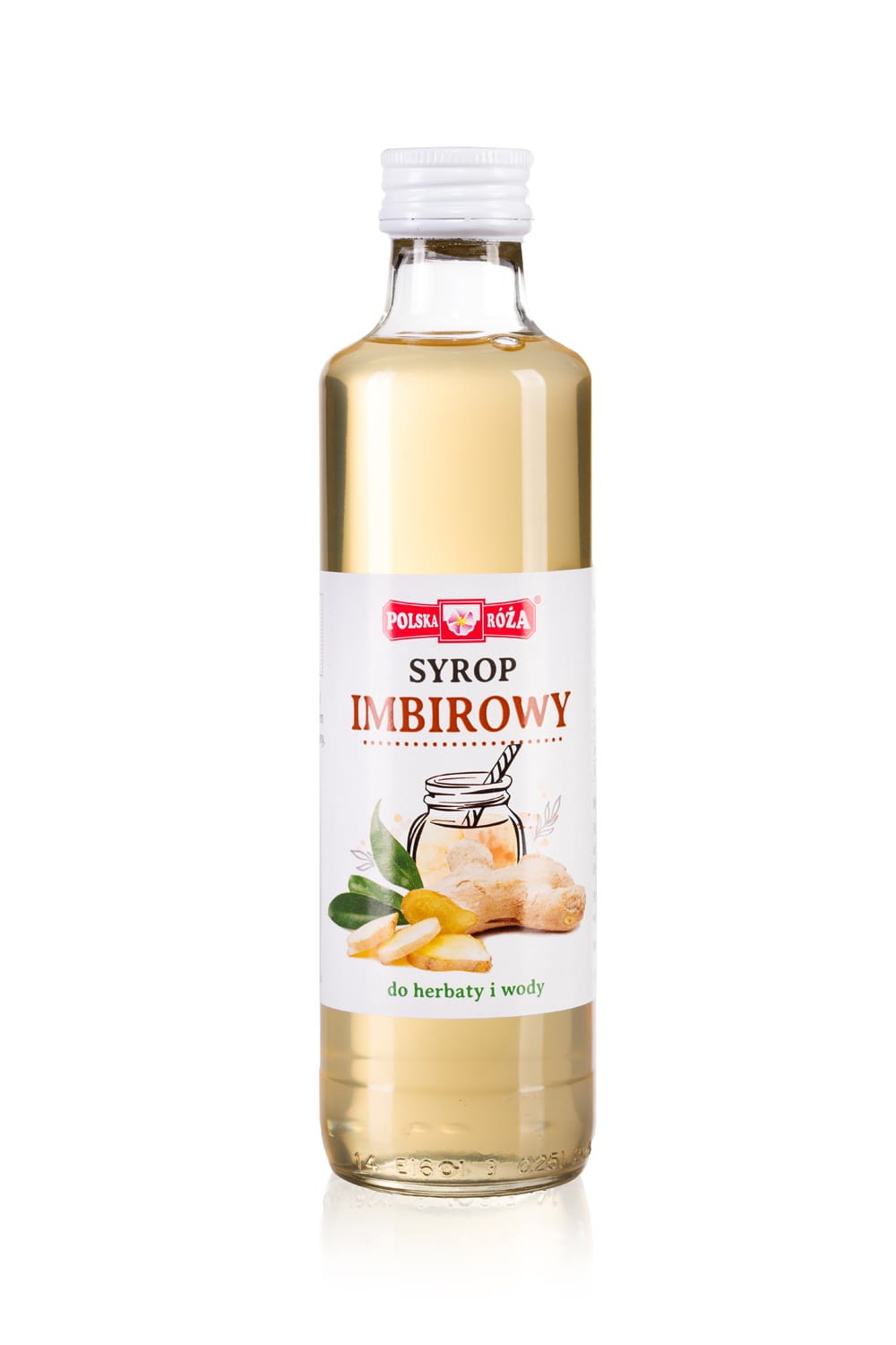 Syrop imbirowy na bazie tłoczonego soku z imbiru i tłoczonego soku z cytryny z dodatkiem cukru. Produkt przeznaczony do herbaty i wody o wyrazistym smaku i aromacie. Doskonały do picia na ciepło i na zimno.