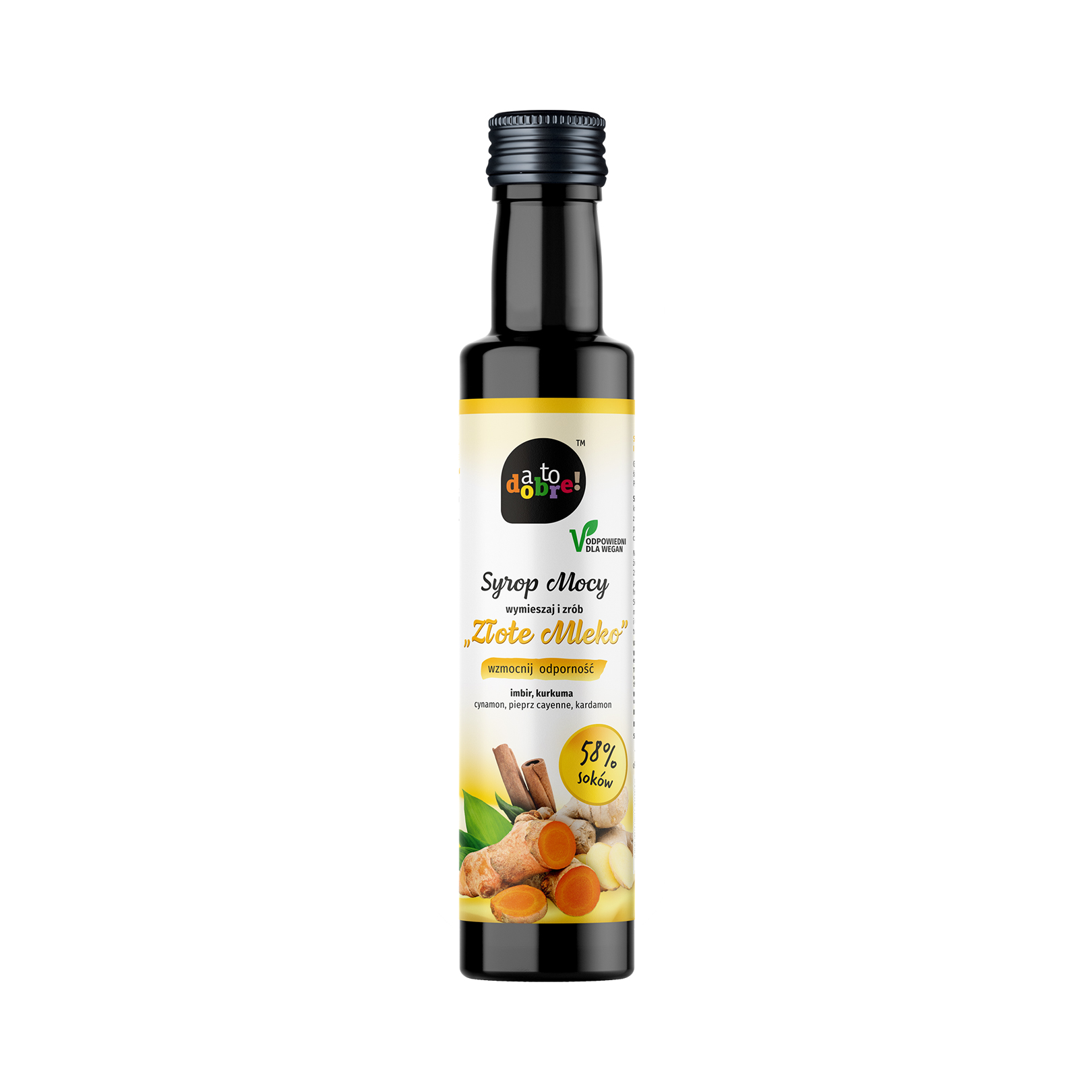 cukier, sok z kurkumy z cytryną 29%, sok z imbiru z cytryną 29%, woda, przyprawy 1% (cynamon, pieprz cayenne, kardamon).