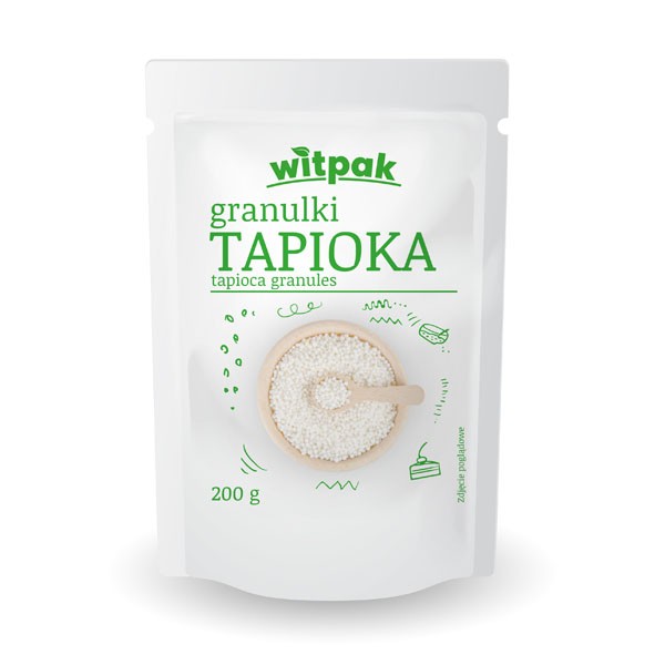 Sposób przygotowania: do ok. 500 ml mleka lub wody dodać 3 łyżki (ok. 30 g) granulek tapioki, następnie gotować na bardzo małym ogniu, od czasu do czasu mieszając