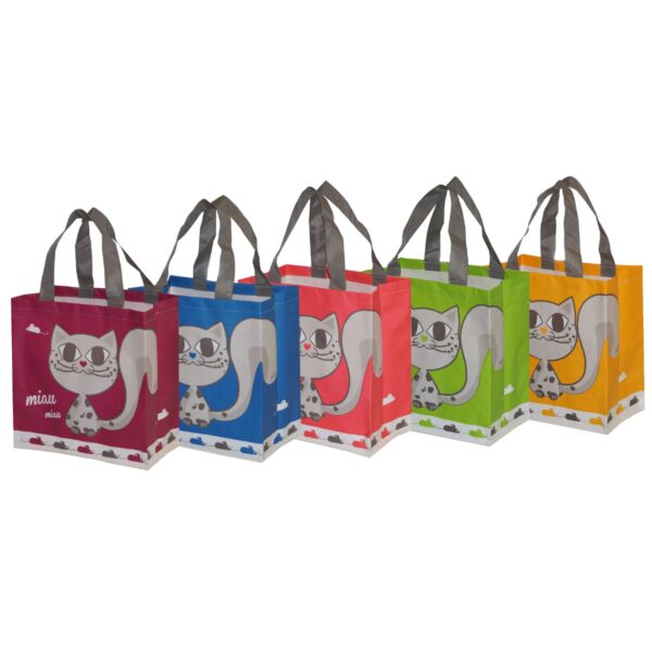 Torba 10 l MINI KitiKat Mix 5 kolorów Masa netto:45 g Producent: FRASPO Przepiękna torba zakupowa z motywem kotków – mix kolorów wysyłany losowo