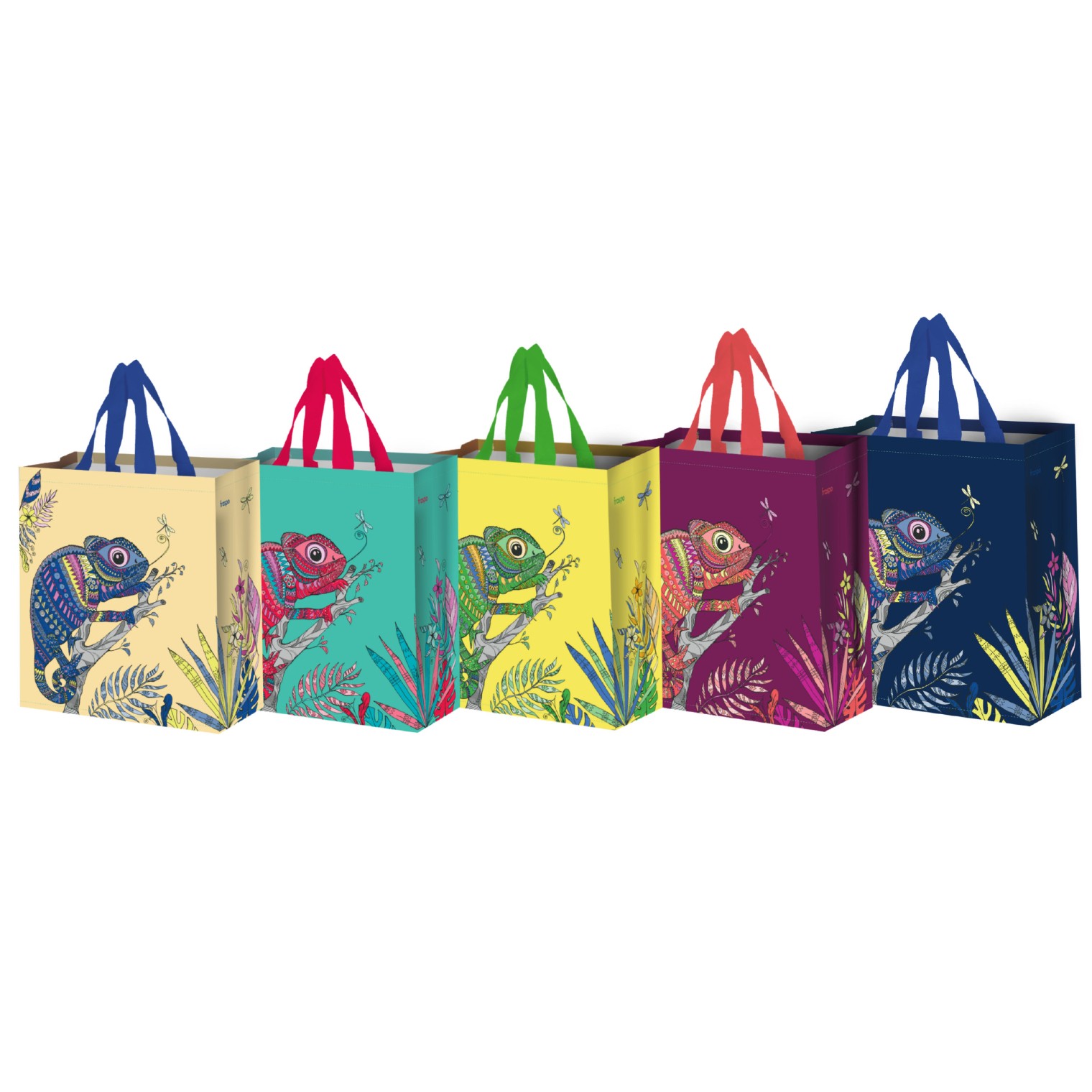 Torba 14 l Kameleon Mix 5 kolorów Masa netto:52 g Producent: FRASPO Przepiękna torba zakupowa z motywem kameleonów – mix kolorów wysyłany losowo