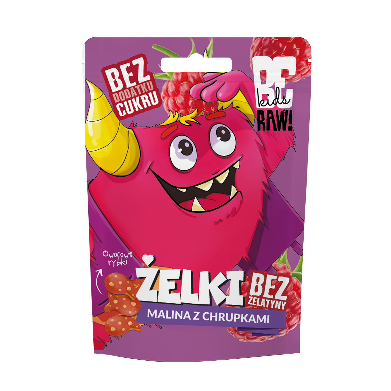 BeRAW Kids Żelki Malina z chrupkami to przekąska owocowa o smaku maliny – bez żelatyny i dodatku cukru. Produkt zawiera tylko naturalnie występujące cukry. Te pyszne żelki są źródłem błonnika pokarmowego, nie zawierają syropu glukozowo-fruktozowego oraz żelatyny. Powstały na bazie soków i przecierów owocowych w ulubionych smakach dzieci. Mogą być spożywane przez wegan!