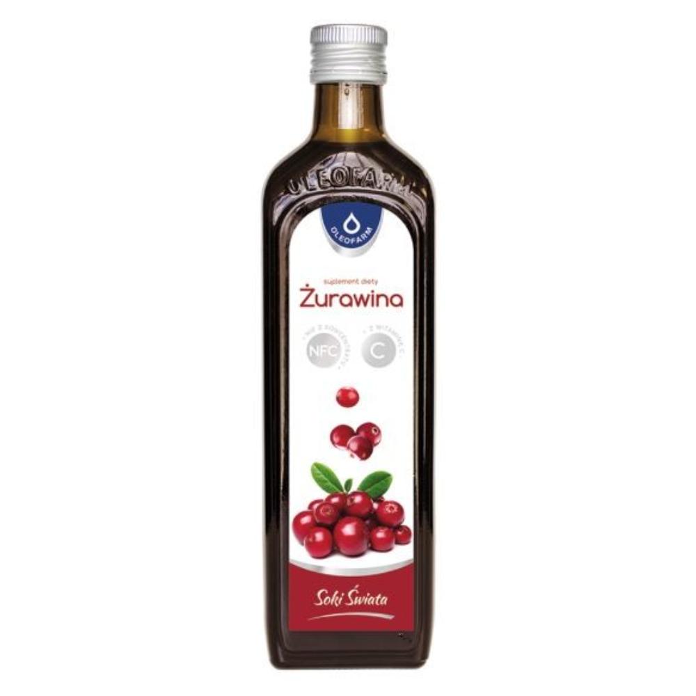 Sok z owoców żurawiny wielkoowocowej 100% (Vaccinium macrocarpon).